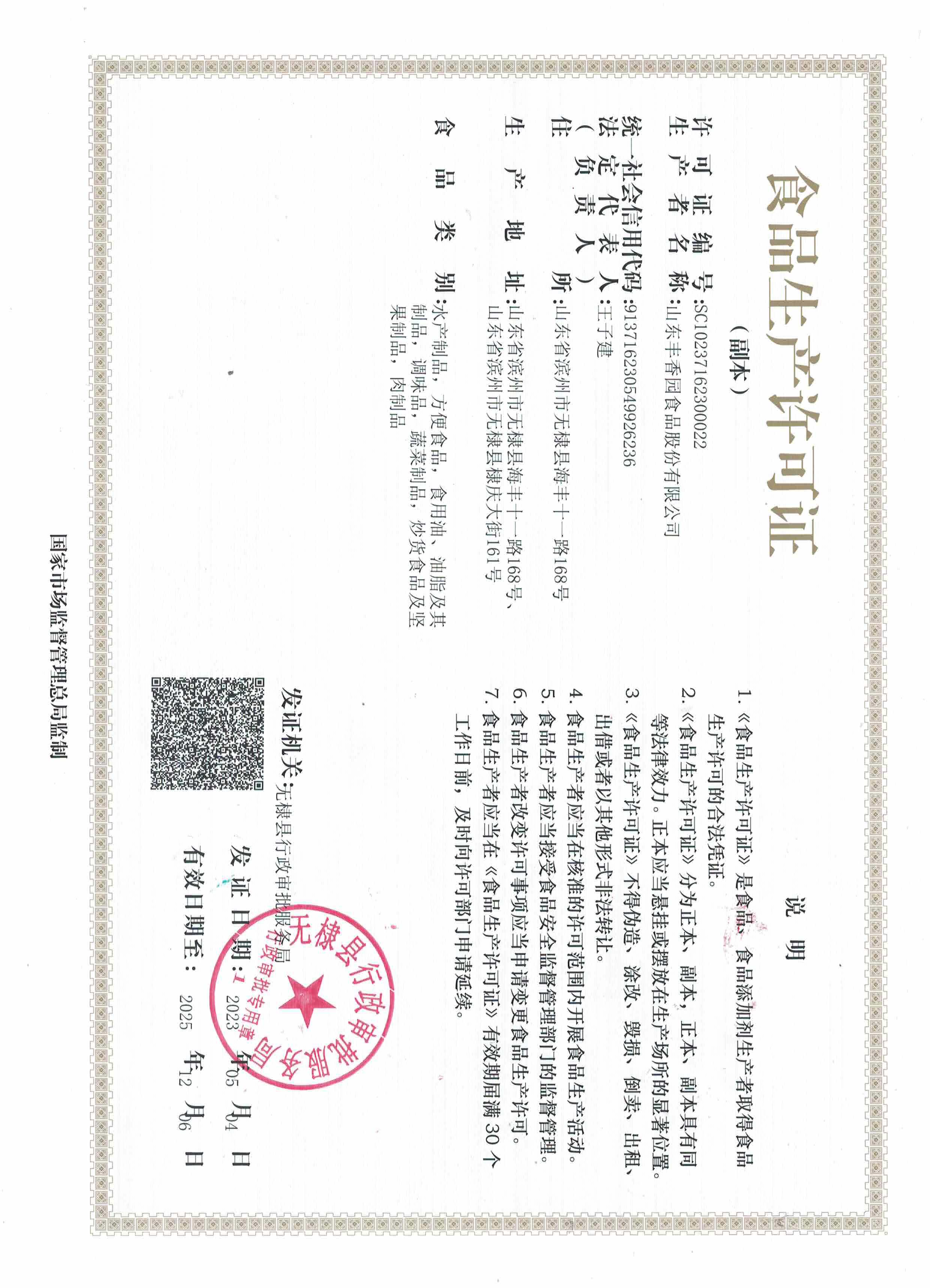 • 山東豐香園食品股份有限公司食品生產企業食品安全承諾書